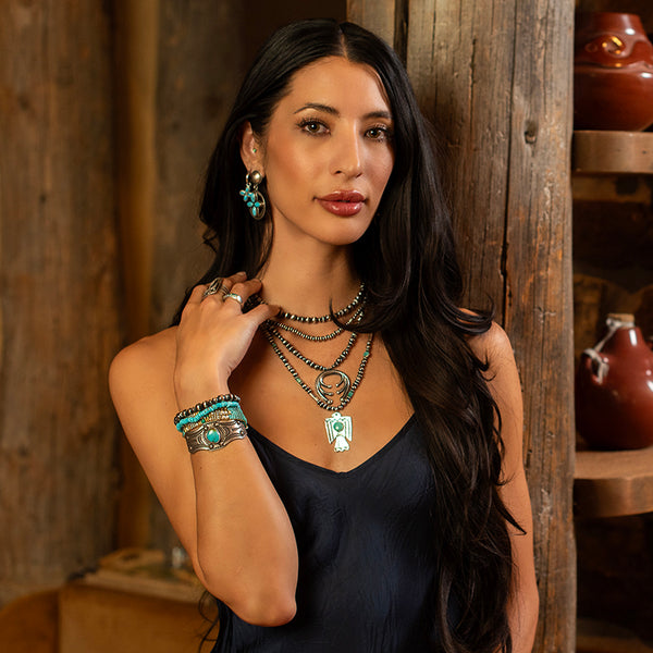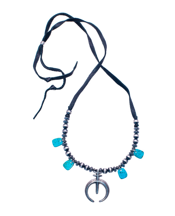 Sterling Silver and Turquoise Desert Pearl Necklace with Turquoise Tab | COWGIRL Heirloom by Peyote Bird
