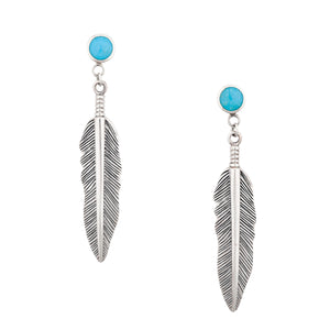 Sterling Silver Feather Wind Earrings with Natural Turquoise
