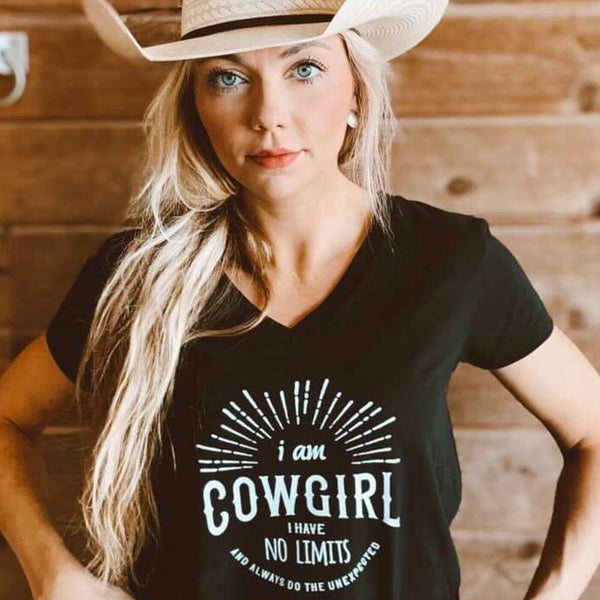 I Am COWGIRL - Short Sleeve V-Neck T-Shirt - Black